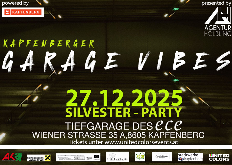 Nach dem Erfolg des „Garage Rave 2025“ folgt Ende des Jahres das nächste Highlights. Dieses Mal findet am 27.12.2025 erstmals in der Tiefgarage des ECE Kapfenberg eine Silvester-Party statt. Einlass ist um 21:00 Uhr, die DJs starten um 22:00 Uhr. Normale Tickets sowie ein VIP-Ticketpaket (beinhaltet eigenen Stehtisch, Eintritt für 4 Personen, 6xRed Bull, 4x […]